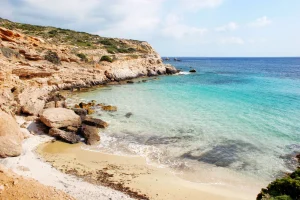 Description: Fikio is a small natural cove with clean water surrounded by a rocky landscape. It can be reached by tour boat from Donoussa.